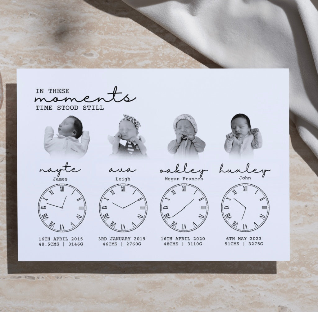 Capture the fleeting moments that mean the most. Our personalised ‘in these moments’ design beautifully preserve each child’s first details, a timeless keepsake you’ll treasure forever.