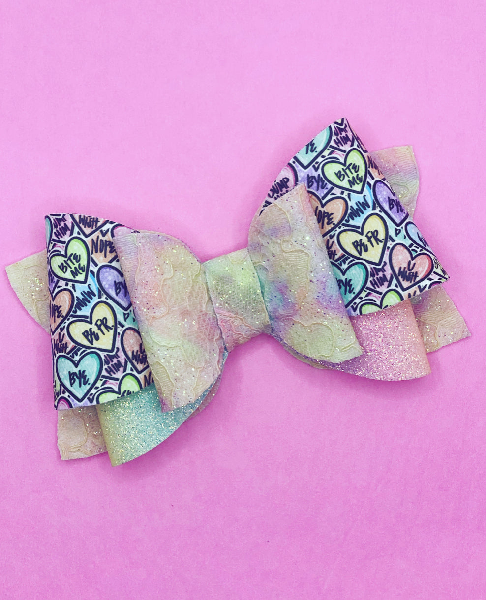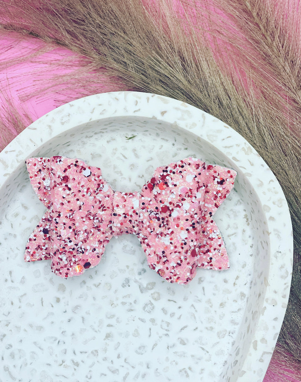 Our bows come finished on your choice of either a soft nylon headband or an alligator clip. Please leave a note at checkout with what you prefer.